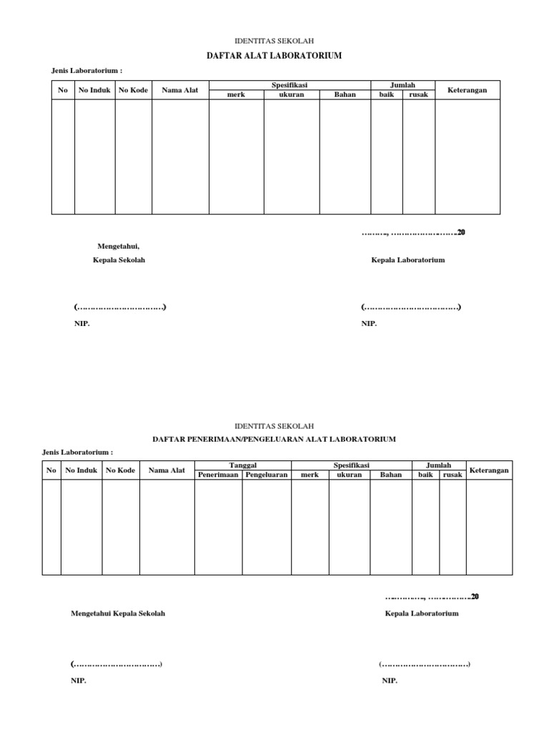 Format Form Alat Laboratorium Pdf